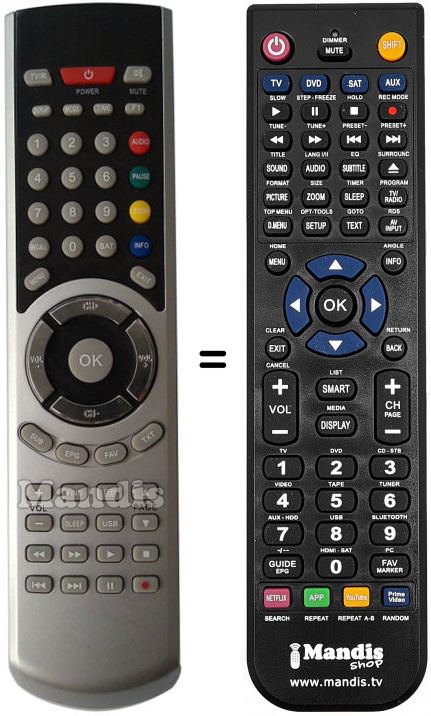 Télécommande qui remplace celle d'origine car elle possède les mêmes fonctions.