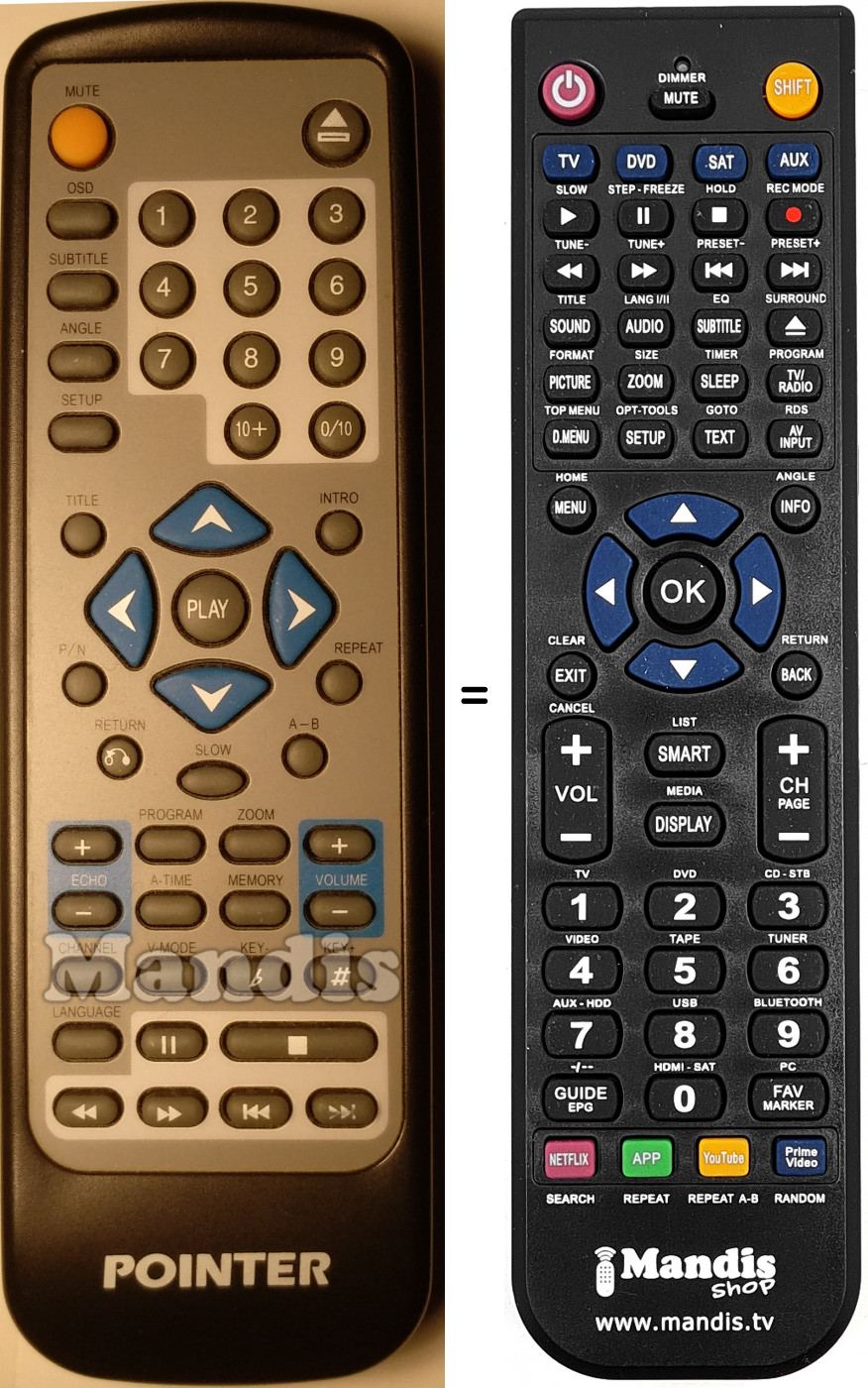Télécommande qui remplace celle d'origine car elle possède les mêmes fonctions.