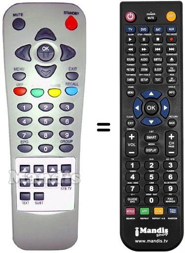 Télécommande qui remplace celle d'origine car elle possède les mêmes fonctions.