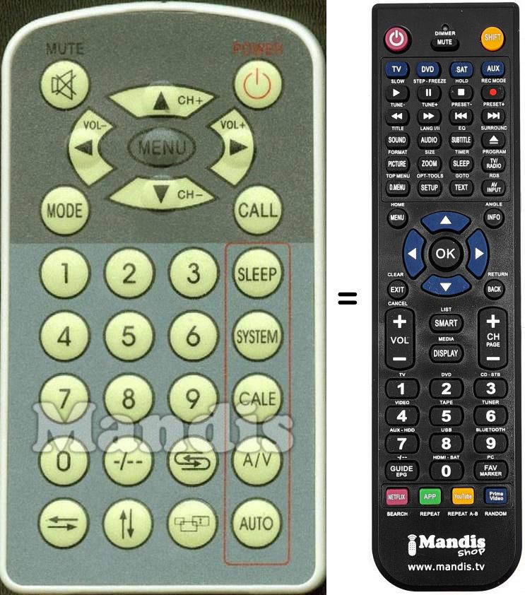 Télécommande qui remplace celle d'origine car elle possède les mêmes fonctions.