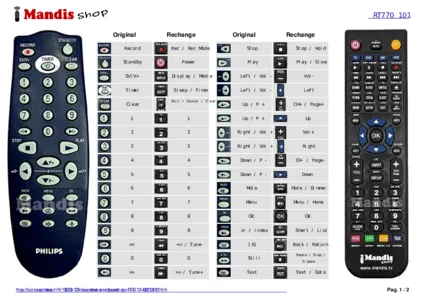 Un document est inclus pour vous aider à utiliser facilement la nouvelle télécommande, en indiquant la correspondance des boutons.