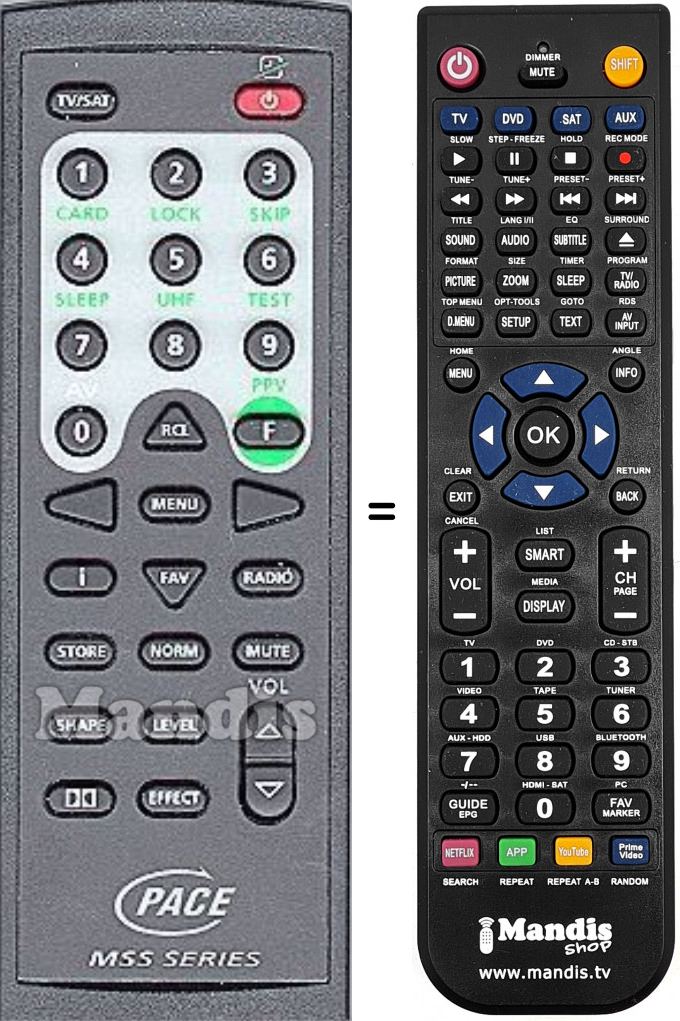 Télécommande qui remplace la télécommande d'origine Pace003 car elle possède les mêmes fonctions.