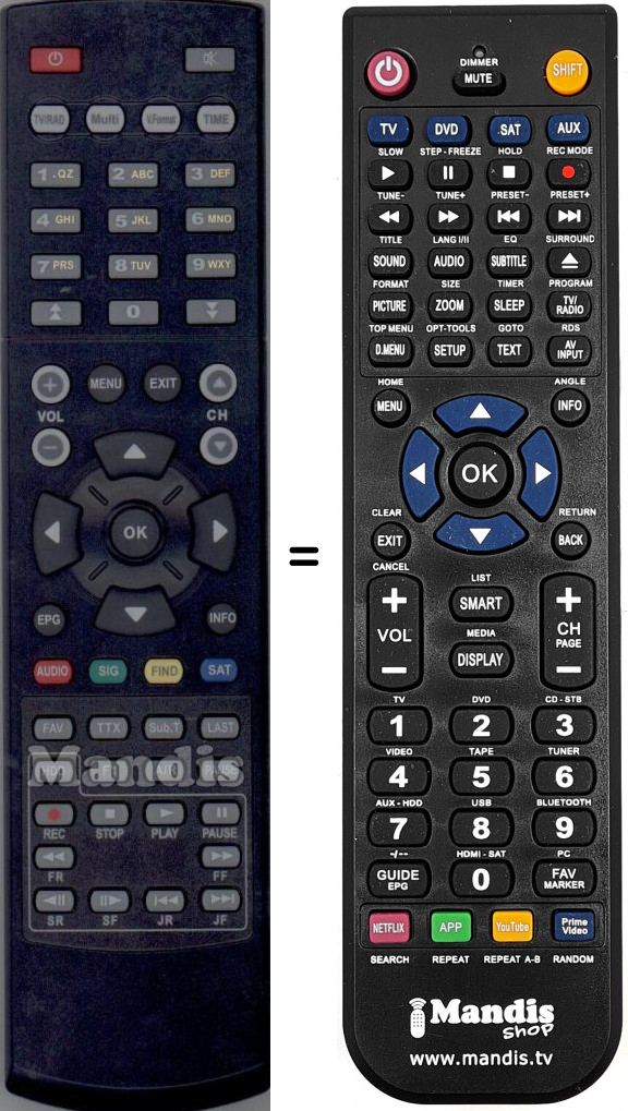 Télécommande qui remplace celle d'origine car elle possède les mêmes fonctions.