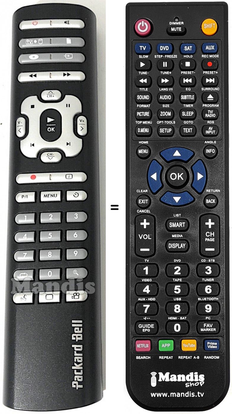 Télécommande qui remplace celle d'origine car elle possède les mêmes fonctions.