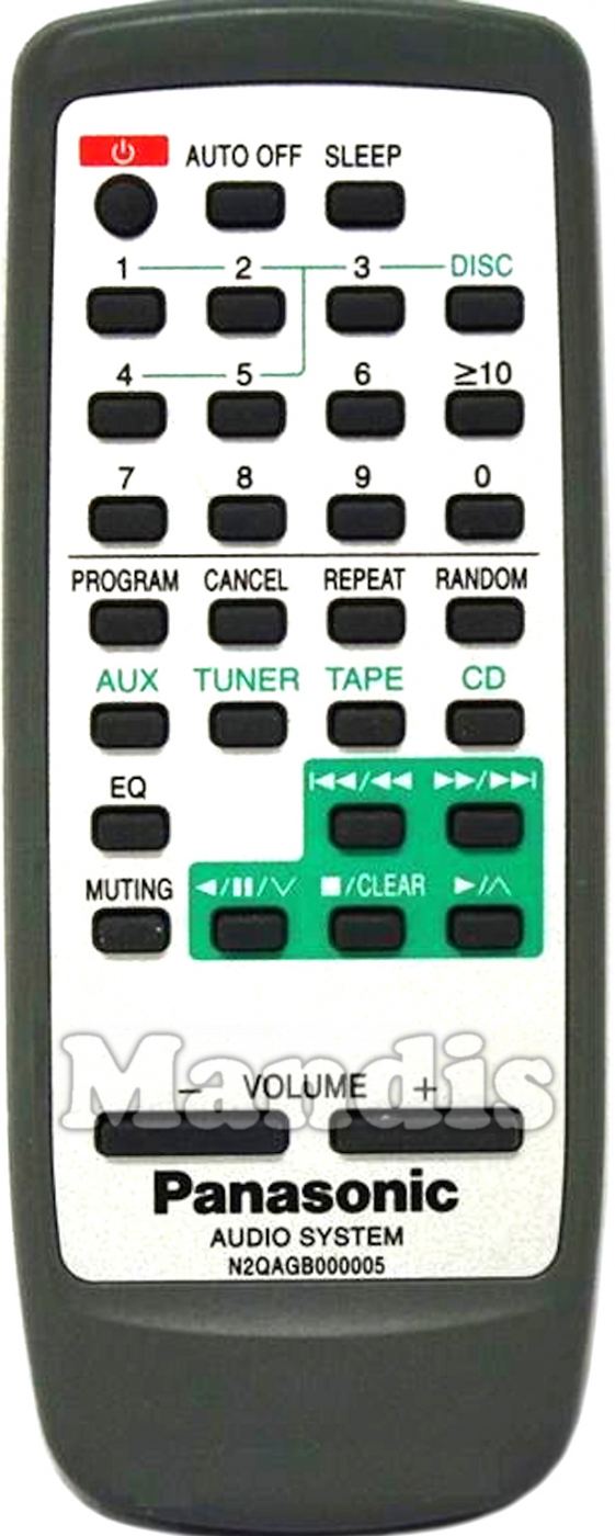 Télécommande d'origine N2QAGB000005 pour chaîne hi-fi de la marque Panasonic. Il s'agit d'un modèle de télécommande d'origine.
