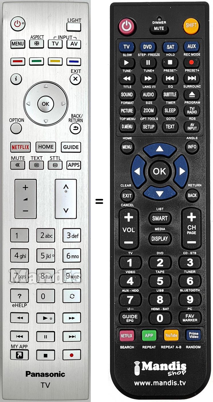 Télécommande qui remplace celle d'origine car elle possède les mêmes fonctions.