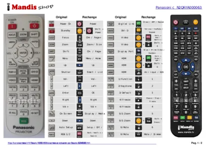 Cette télécommande remplace entièrement votre N2QAYA000105 et offre toutes les fonctions de l'originale.