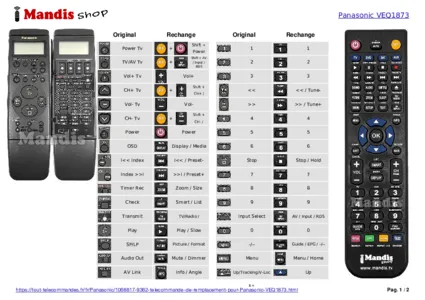 Cette télécommande remplace entièrement votre VEQ1873 et offre toutes les fonctions de l'originale.