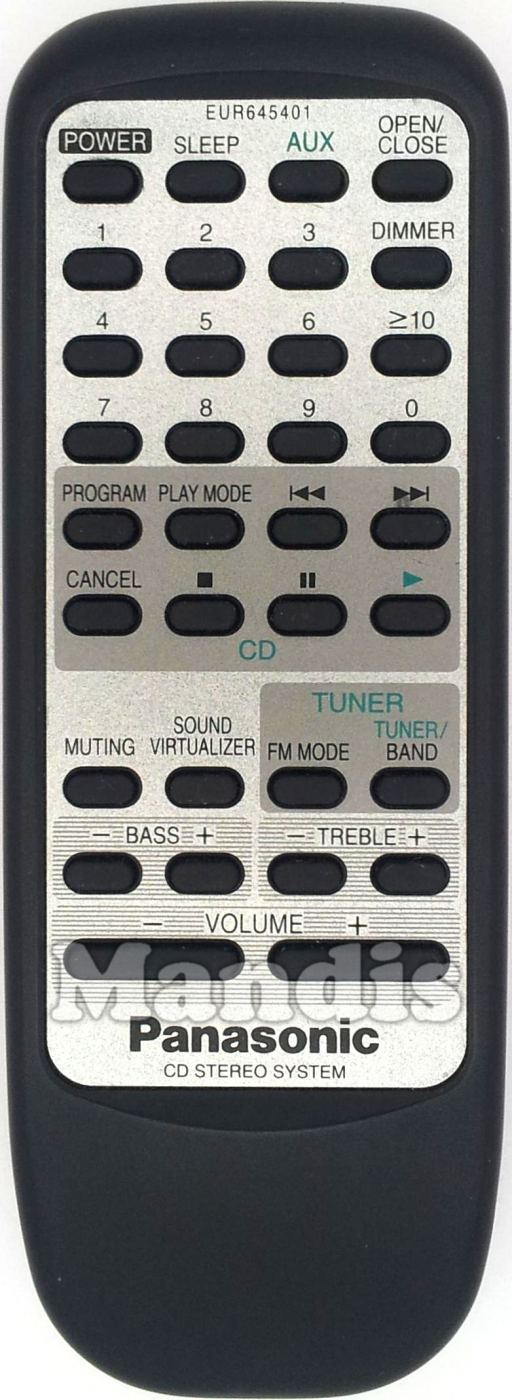 Télécommande d'origine EUR645401 pour chaîne hi-fi de la marque Panasonic. Il s'agit d'un modèle de télécommande d'origine.