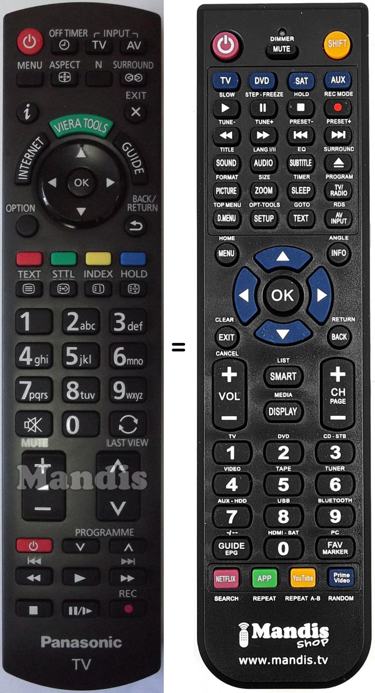 Télécommande qui remplace celle d'origine car elle possède les mêmes fonctions.