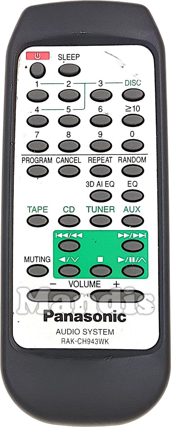 Télécommande d'origine RAK-CH943WK pour chaîne hi-fi de la marque Panasonic. Il s'agit d'un modèle de télécommande d'origine.