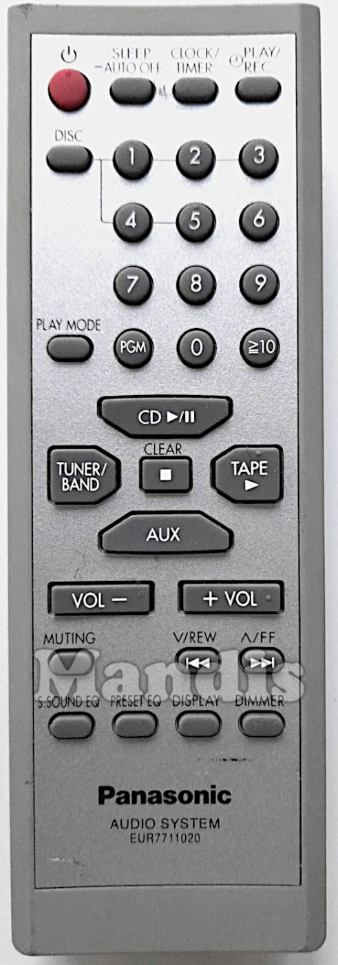Télécommande d'origine EUR7711020 pour chaîne hi-fi de la marque Panasonic. Il s'agit d'un modèle de télécommande d'origine.
