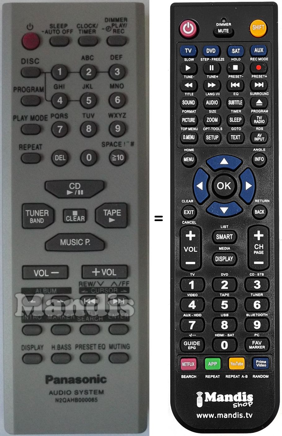 Télécommande qui remplace la télécommande d'origine N2QAHB000065 car elle possède les mêmes fonctions.