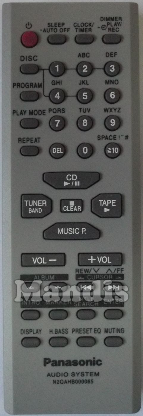 Télécommande d'origine N2QAHB000065 pour chaîne hi-fi de la marque Panasonic. Il s'agit d'un modèle de télécommande d'origine.