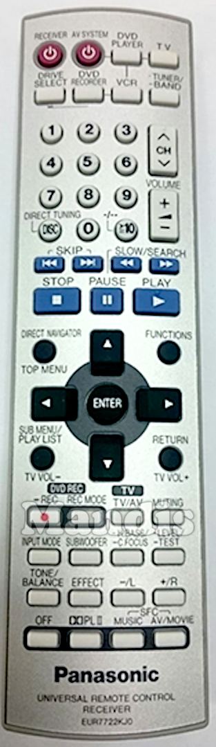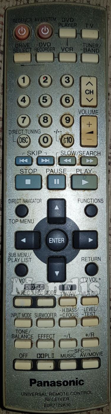 Télécommande d'origine EUR7722KJ0 pour chaîne hi-fi de la marque Panasonic. Il s'agit d'un modèle de télécommande d'origine.