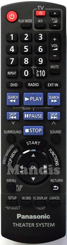Télécommande d'origine N2QAYB000456 pour home theatre de la marque Panasonic. Il s'agit d'un modèle de télécommande d'origine.