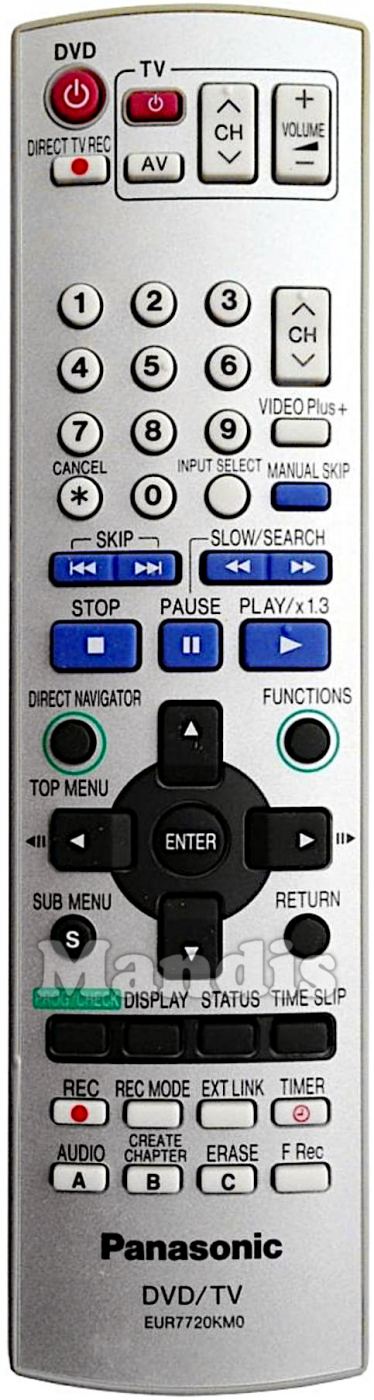 Télécommandes équivalentes qui remplacent la télécommande PANASONIC EUR7720KM0 et possèdent exactement les mêmes fonctions :