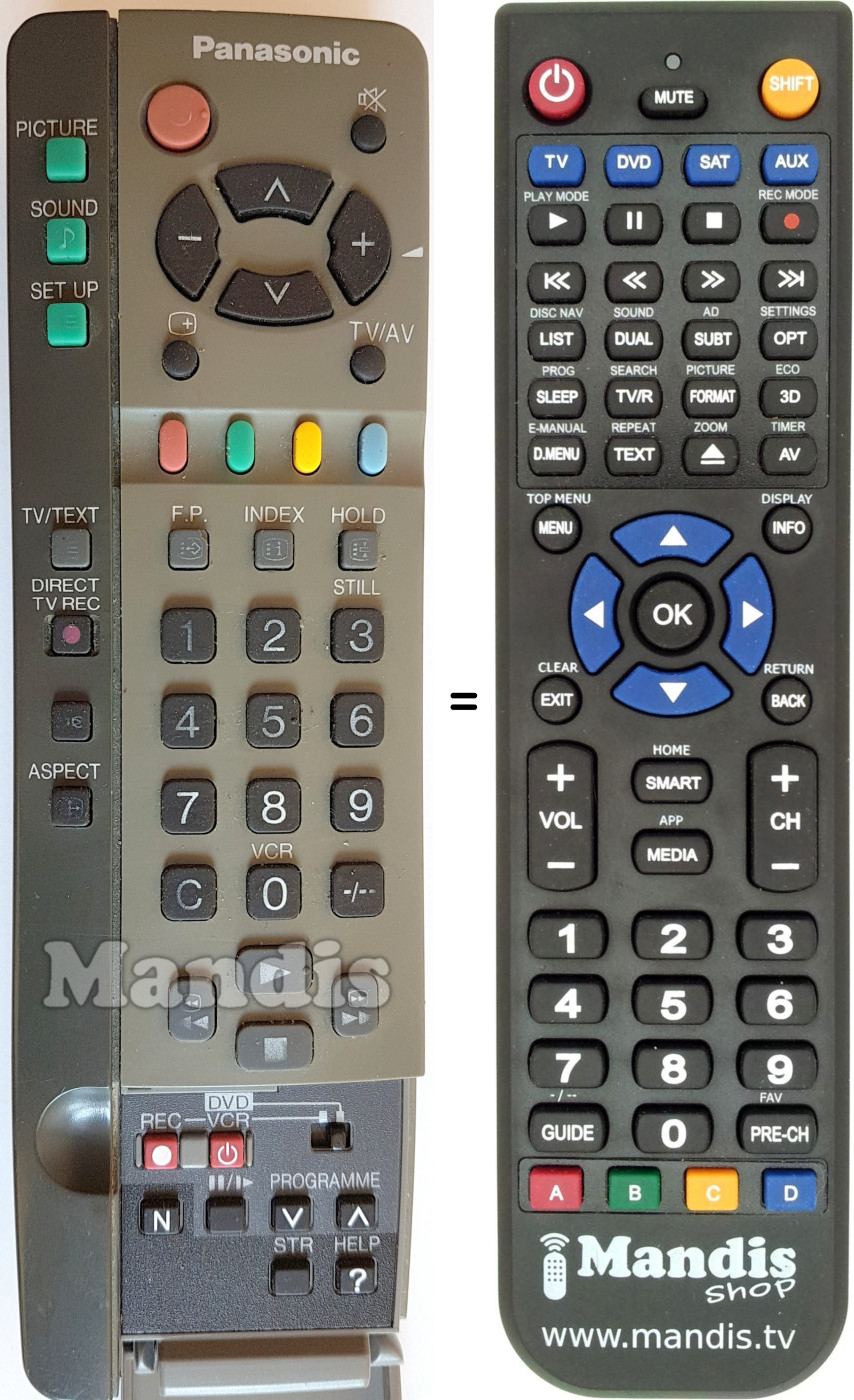 Télécommande équivalente Panasonic VEQ2051Disponible en stock27,50 € (TVA incluse)