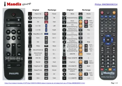 Un document est inclus pour vous aider à utiliser facilement la nouvelle télécommande, en indiquant la correspondance des boutons.