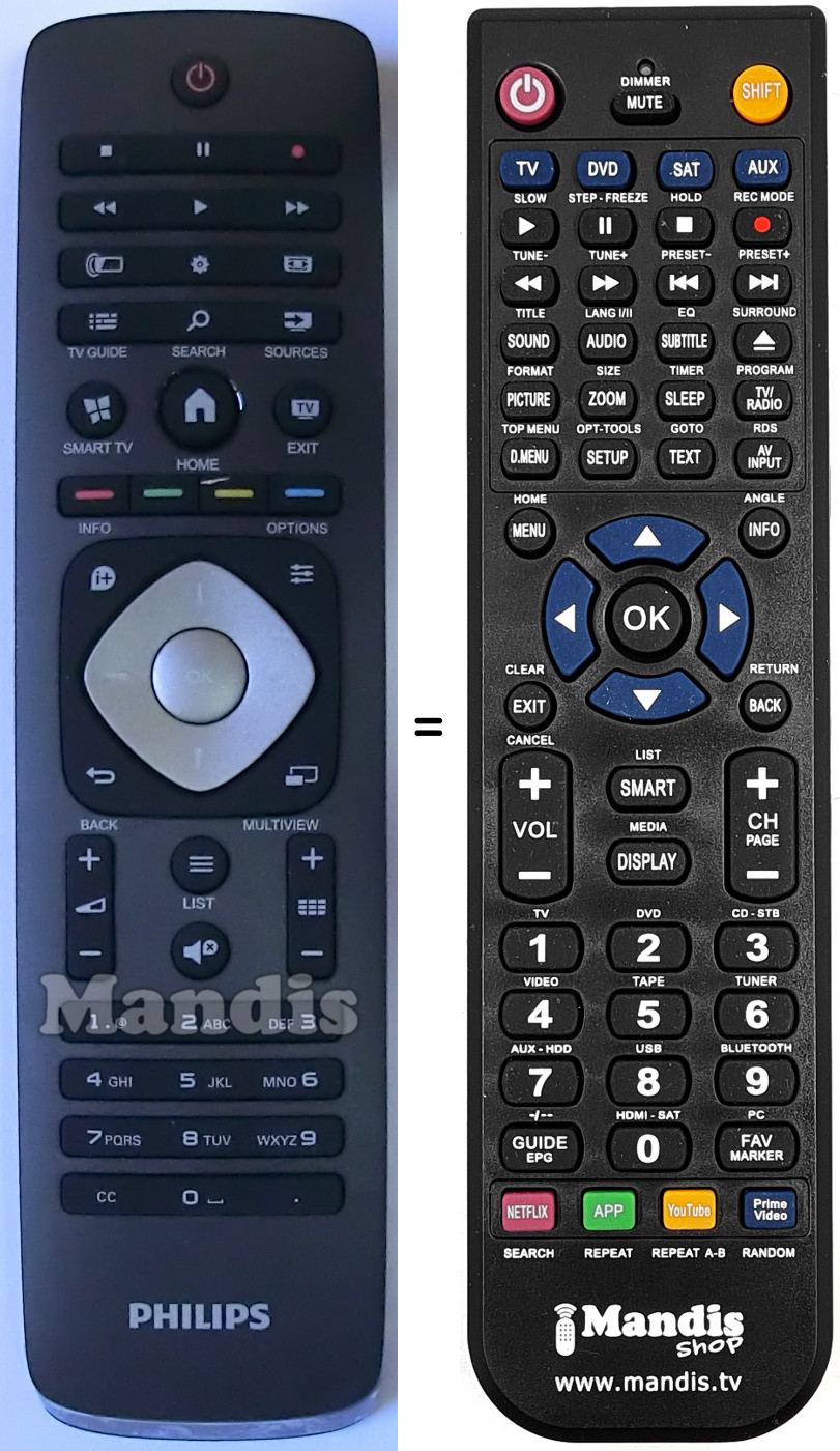Télécommande qui remplace celle d'origine car elle possède les mêmes fonctions.