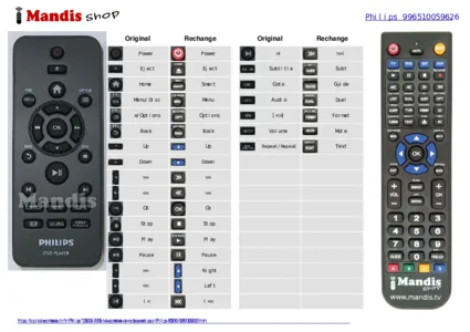 Un document est inclus pour vous aider à utiliser facilement la nouvelle télécommande, en indiquant la correspondance des boutons.