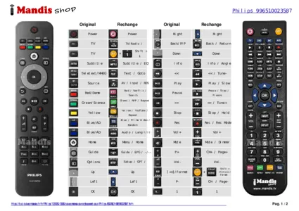 Un document est inclus pour vous aider à utiliser facilement la nouvelle télécommande, en indiquant la correspondance des boutons.
