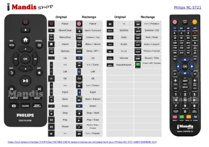 Un document est inclus pour vous aider à utiliser facilement la nouvelle télécommande, en indiquant la correspondance des boutons.