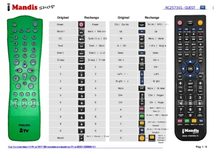 Un document est inclus pour vous aider à utiliser facilement la nouvelle télécommande, en indiquant la correspondance des boutons.