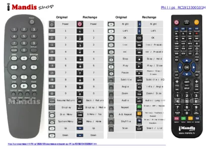 Un document est inclus pour vous aider à utiliser facilement la nouvelle télécommande, en indiquant la correspondance des boutons.