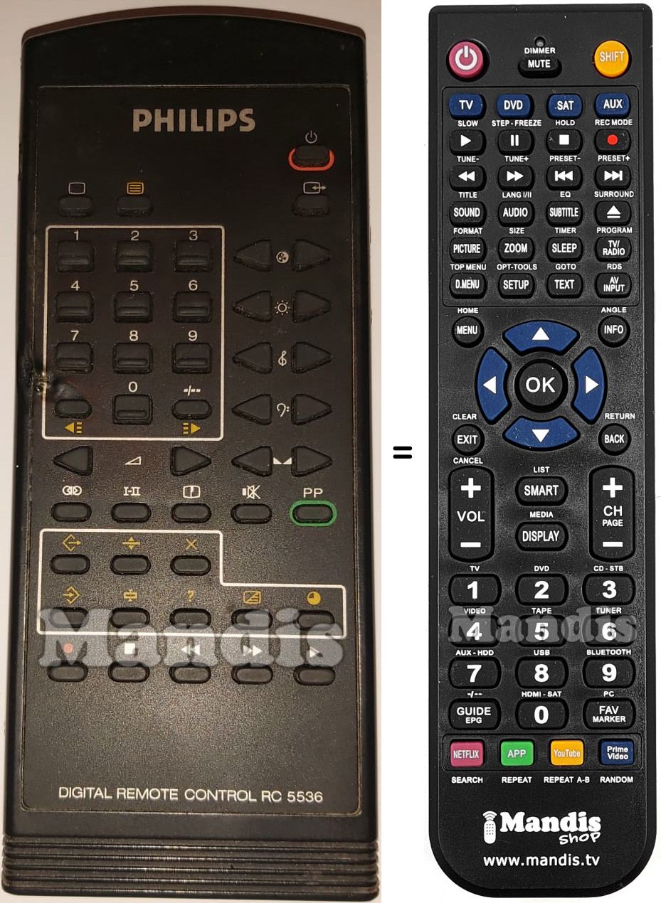 Cette télécommande remplace entièrement votre RC5536 et offre toutes les fonctions de l'originale.