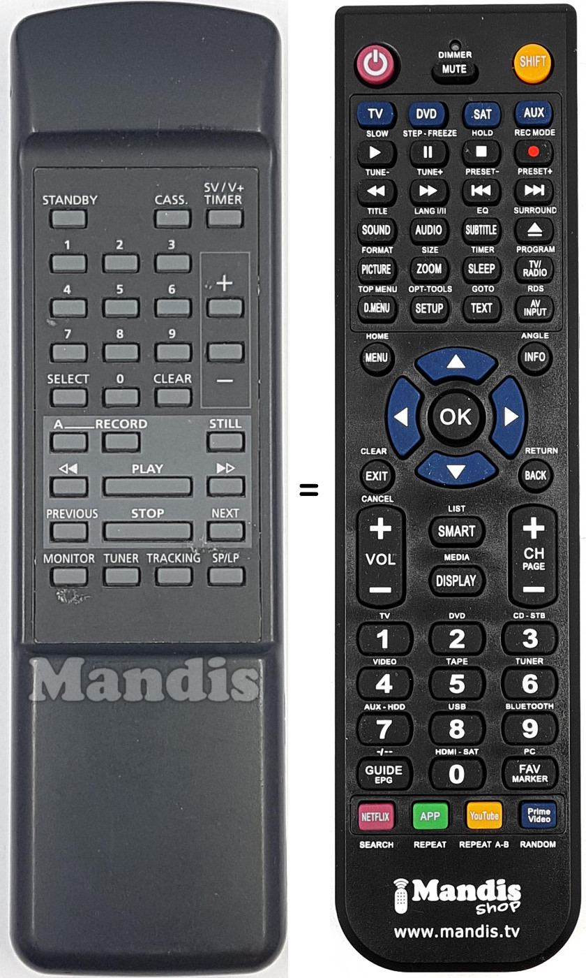 La télécommande équivalente exécute toutes les fonctions, même lorsque la télécommande d'origine commande divers appareils. Dans la télécommande équivalente, est possible de programmer différents appareils (TV, DVD, SAT et AUX) de manière à pouvoir inclure toutes les fonctions de la télécommande d'origine. Si vous voyez le manuel des touches (instructions de la télécommande), vous pouvez vérifier que toutes les fonctions sont présentes.