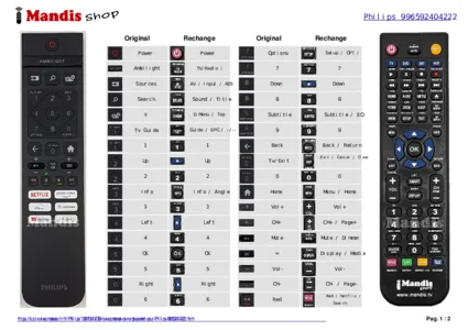 Un document est inclus pour vous aider à utiliser facilement la nouvelle télécommande, en indiquant la correspondance des boutons.