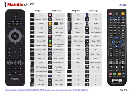 Un document est inclus pour vous aider à utiliser facilement la nouvelle télécommande, en indiquant la correspondance des boutons.