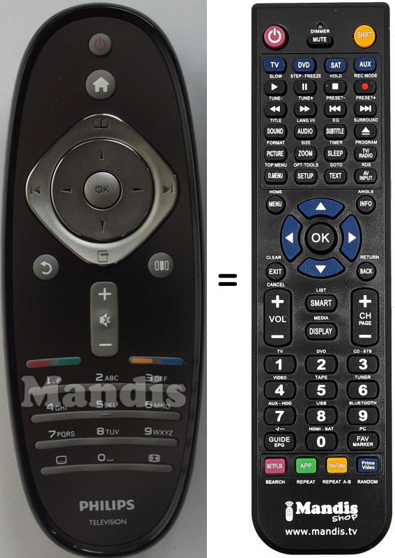 Télécommande qui remplace la télécommande d'origine RC2683203/01 (313923819861) car elle possède les mêmes fonctions. Il ne s'agit pas d'une télécommande universelle mais d'une télécommande qui remplace celle d'origine. Vous recevrez la télécommande prête à fonctionner, vous n'aurez qu'à mettre les piles. Il n'est pas nécessaire de la programmer. Nous vous garantissons que la télécommande aura exactement les mêmes fonctions que celle d'origine.