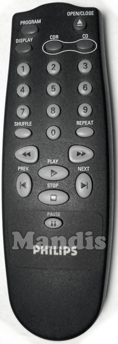 Open / Close, Program, Display, CDR, CD, 1, 2, 3, 4, 5, 6, 7, 8, 9, 0, Shuffle, Repeat, <<, >>, Play, I< Prev, Stop, Next >I, Pause