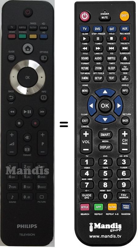 Télécommande qui remplace celle d'origine car elle possède les mêmes fonctions.