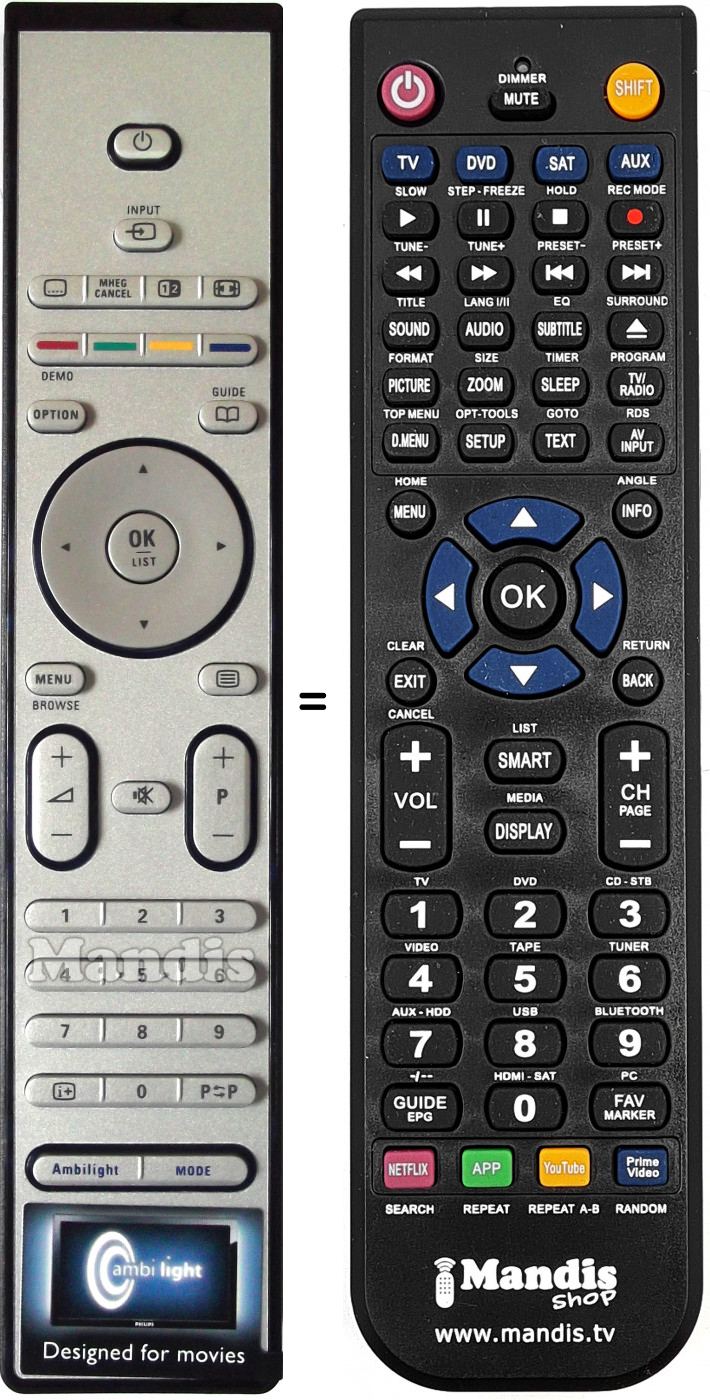 Télécommande qui remplace celle d'origine car elle possède les mêmes fonctions.
