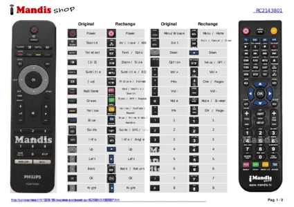 Un document est inclus pour vous aider à utiliser facilement la nouvelle télécommande, en indiquant la correspondance des boutons.