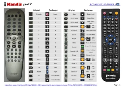 Un document est inclus pour vous aider à utiliser facilement la nouvelle télécommande, en indiquant la correspondance des boutons.