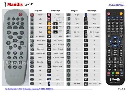 Un document est inclus pour vous aider à utiliser facilement la nouvelle télécommande, en indiquant la correspondance des boutons.