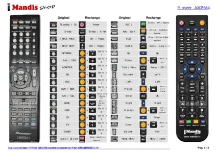 Un document est inclus pour vous aider à utiliser facilement la nouvelle télécommande, en indiquant la correspondance des boutons.