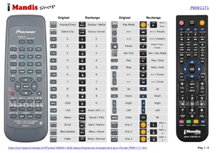 Cette télécommande remplace entièrement votre PWW1171 et offre toutes les fonctions de l'originale.