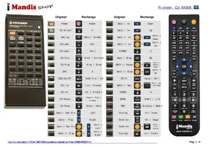 Un document est inclus pour vous aider à utiliser facilement la nouvelle télécommande, en indiquant la correspondance des boutons.