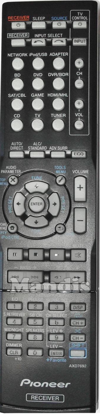 Télécommandes équivalentes qui remplacent la télécommande PIONEER AXD7692 (8300769200010-IL) et possèdent exactement les mêmes fonctions :