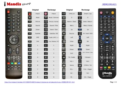 Un document est inclus pour vous aider à utiliser facilement la nouvelle télécommande, en indiquant la correspondance des boutons.