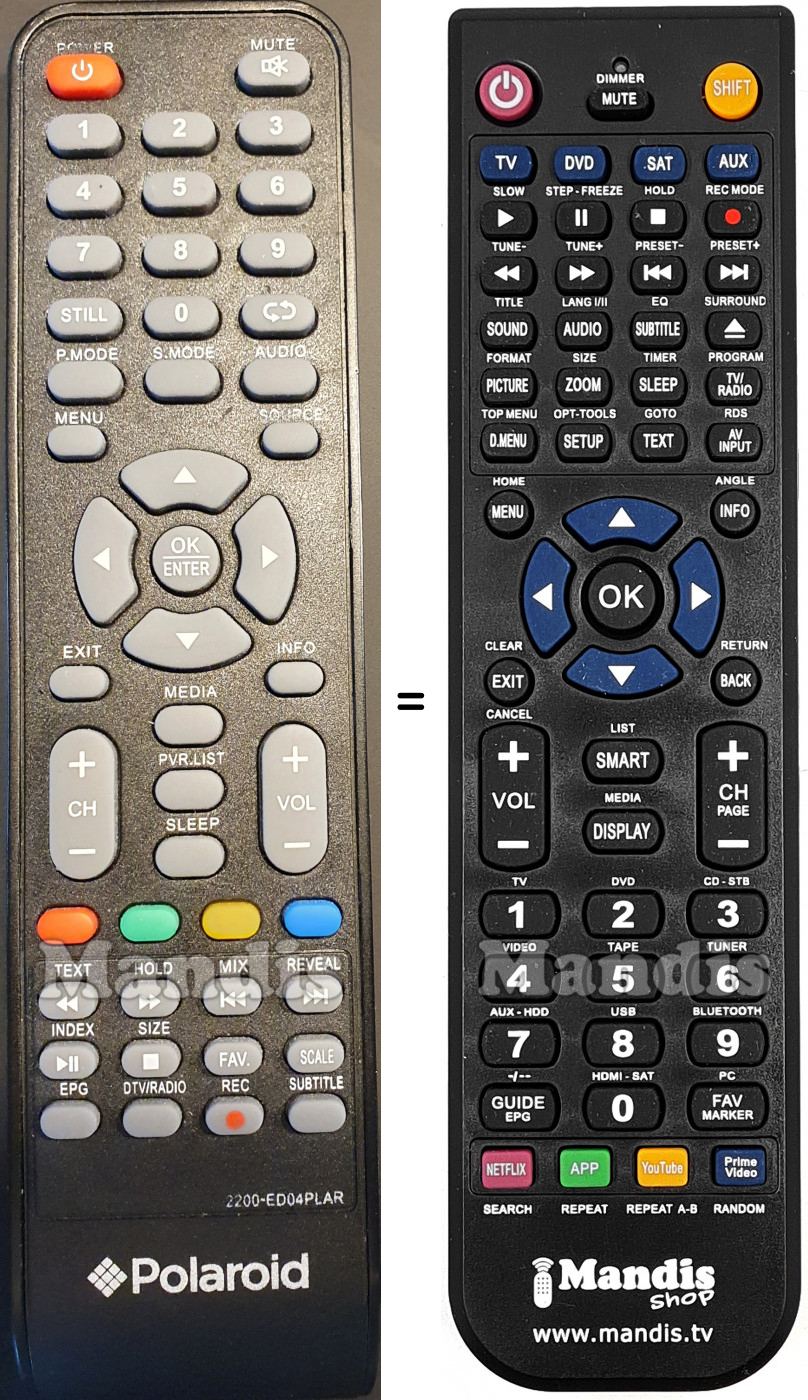 Cette télécommande remplace entièrement votre 2200-ED04PLAR et offre toutes les fonctions de l'originale.