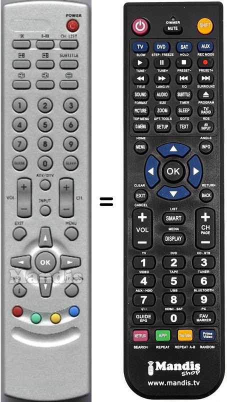 Il ne s'agit pas d'une télécommande universelle mais d'une télécommande qui remplace celle d'origine.