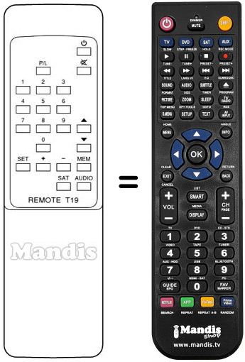 Télécommande qui remplace celle d'origine car elle possède les mêmes fonctions.