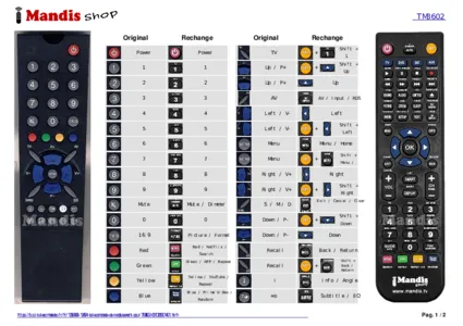 Un document est inclus pour vous aider à utiliser facilement la nouvelle télécommande, en indiquant la correspondance des boutons.
