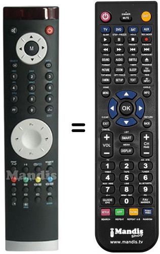 Télécommande qui remplace celle d'origine car elle possède les mêmes fonctions.